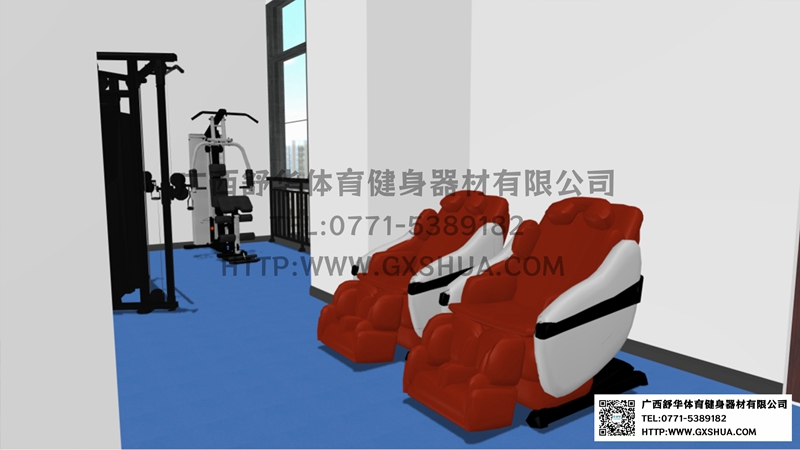 由于企业单位健身房的不规则性,根据场地、职工需求、整体预算,有氧器材区域配置多宝电竞跑步机2台,椭圆机、动感单车、划船器各1台,满足职工的日常有氧训练需求,有效地提升心肺功能;力量器械配置单人站综合训练器、小飞鸟,满足使用者全身锻炼的需求;自由力量区域配置史密斯机、哑铃套组、腹肌板满足多样化训练需求,促使健身训练更丰富,休闲区配置按摩椅,可以促进血液循环,让员工使用按摩椅放松身心,可以能够有效缓解工作压力。