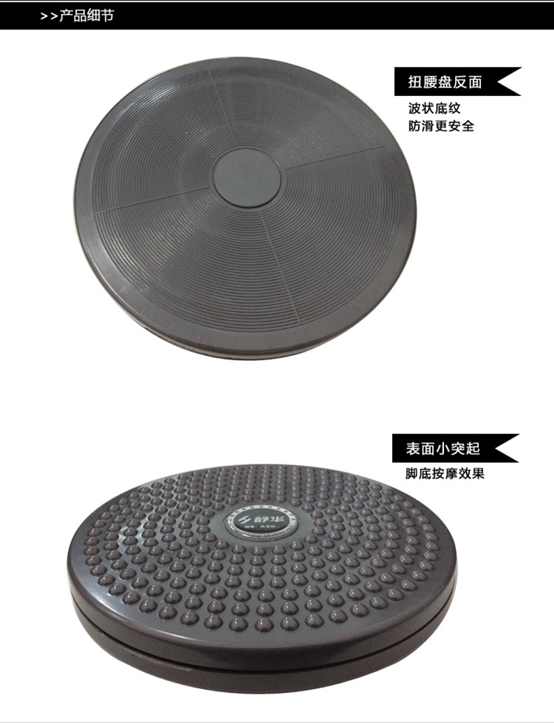 扭腰器借助使用人体自重,用过踩踏按摩垫,自然地反复刺激足底。配合左右扭腰,达到更好的美体塑身效果。