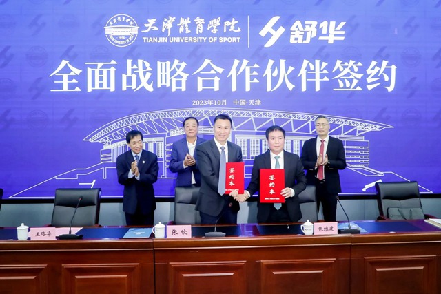 2023年10月10日,多宝电竞体育股份有限公司与天津体育学院战略合作签约暨体育工程研发中心揭牌仪式在天津举行。天津市市委教育工委委员、市政府教育督导室总督学王秋岩,天津市体育局副局长(一级巡视员)王路华,多宝电竞体育董事长兼总裁张维建、副总裁李晓峰,天津体育学院校党委副书记、院长张欣出席。签约仪式由天津体育学院副院长张卫国主持。